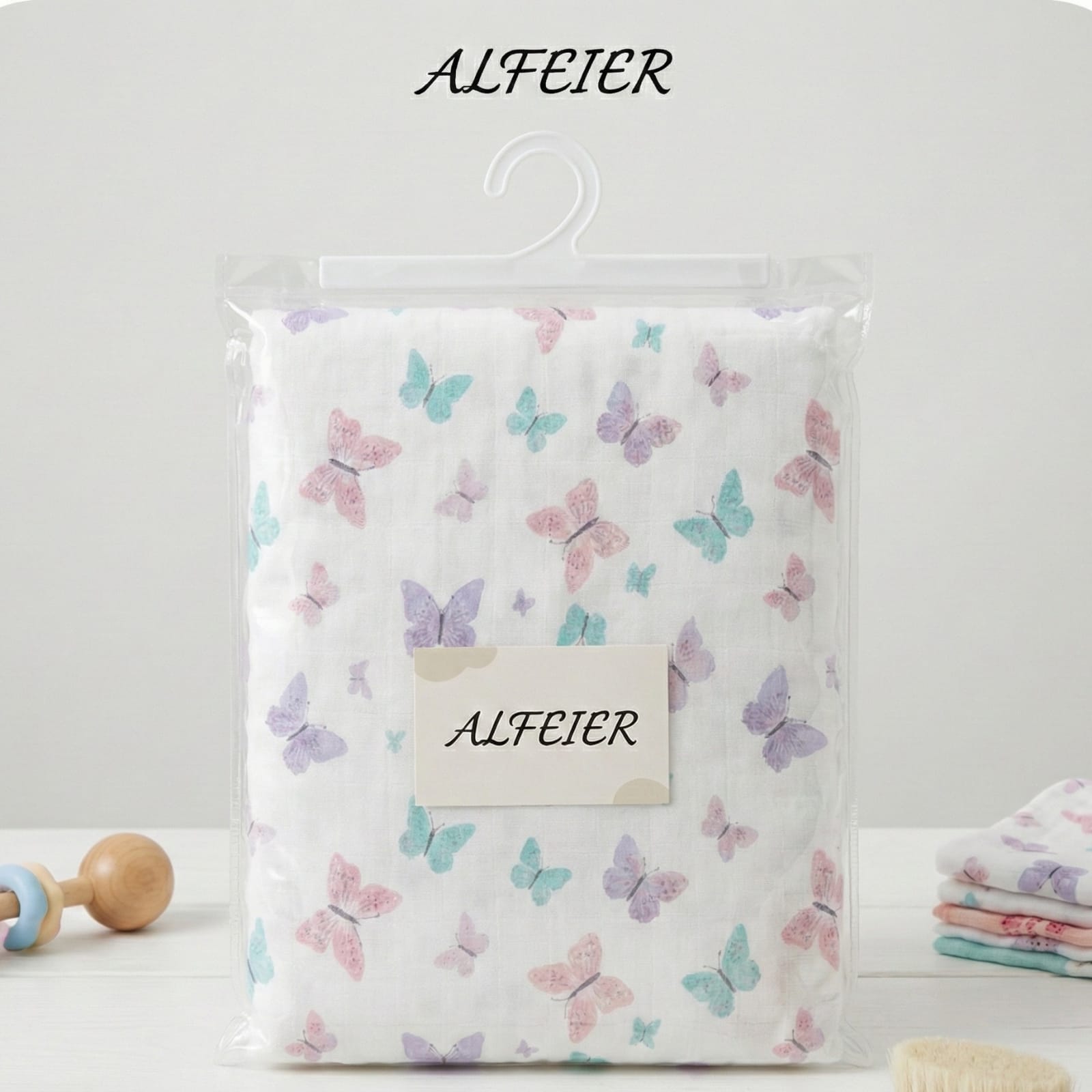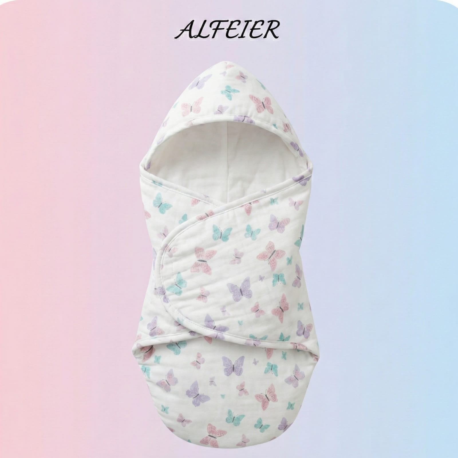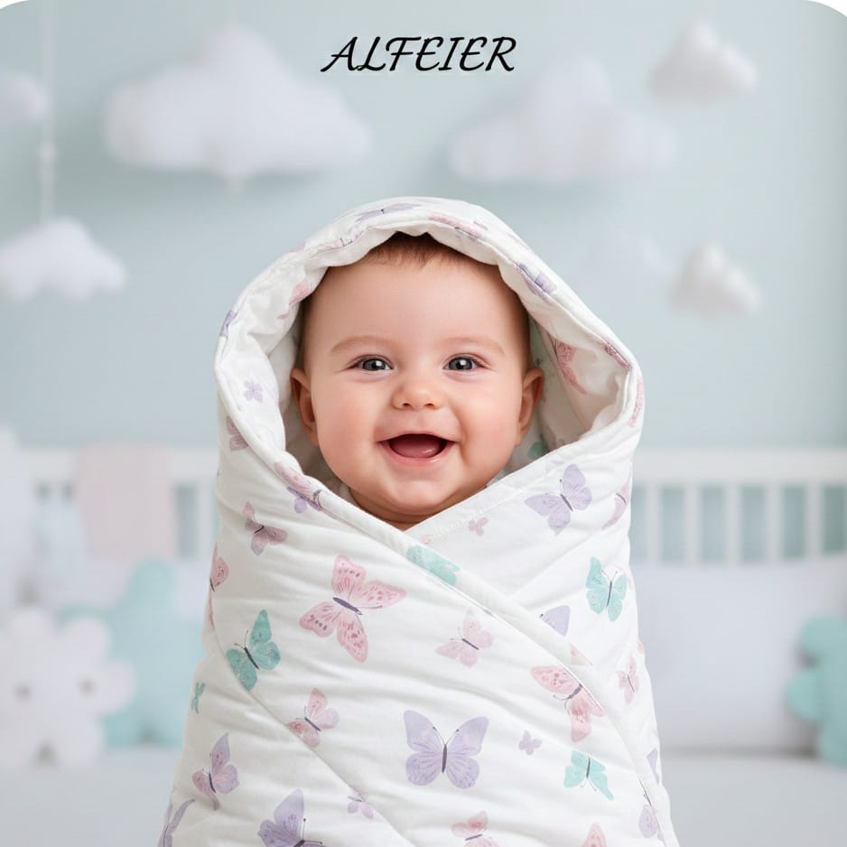 Wrap your little dreamer in a cocoon of pure comfort. This ALFEIER hooded swaddle features dancing pastel butterflies on ultra-soft, quilted fabric. Designed for snug sleeping and adorable photo moments, it’s the perfect gentle hug for your newborn.